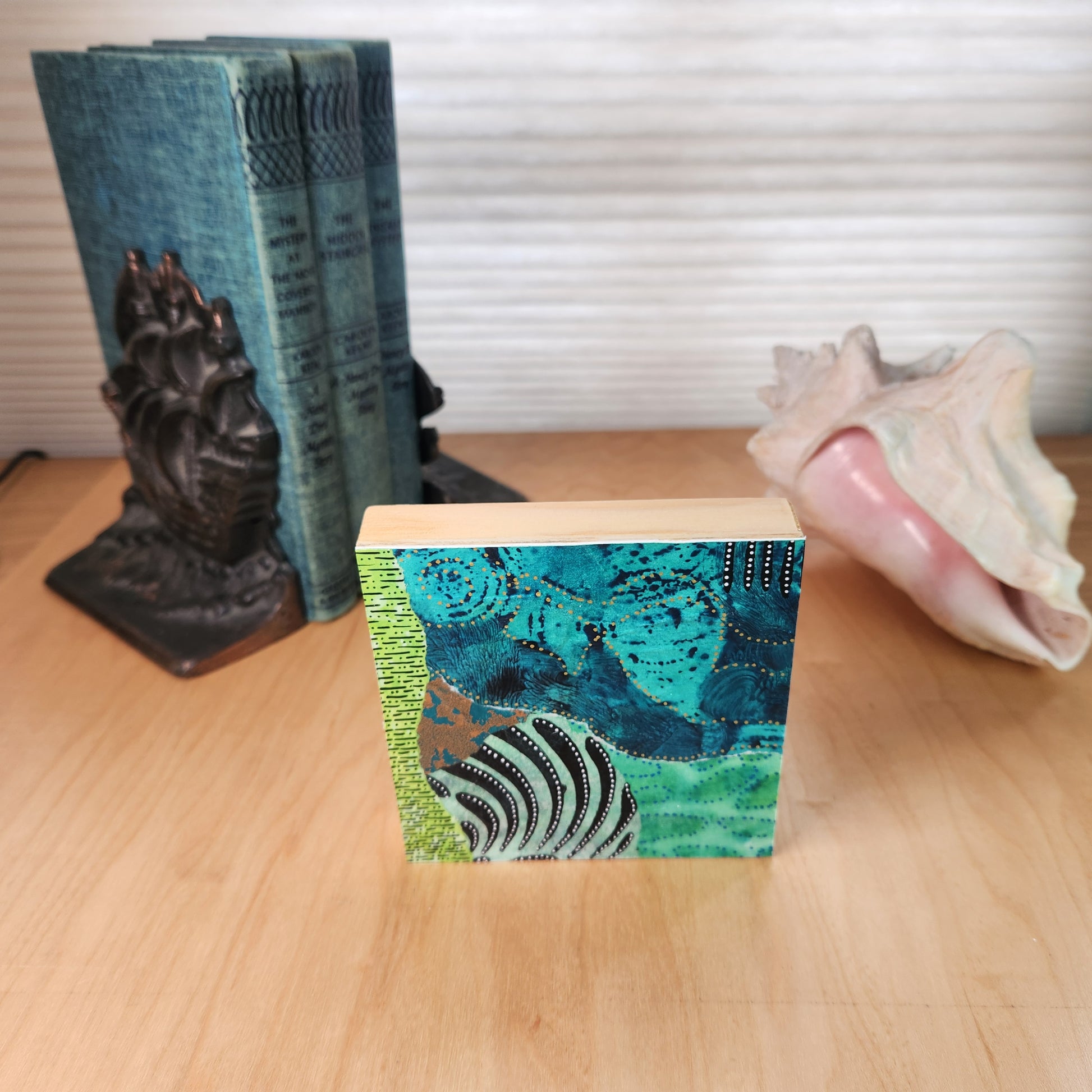Original artwork: 4" × 4" mixed-media collage mounted on a cradled wood board